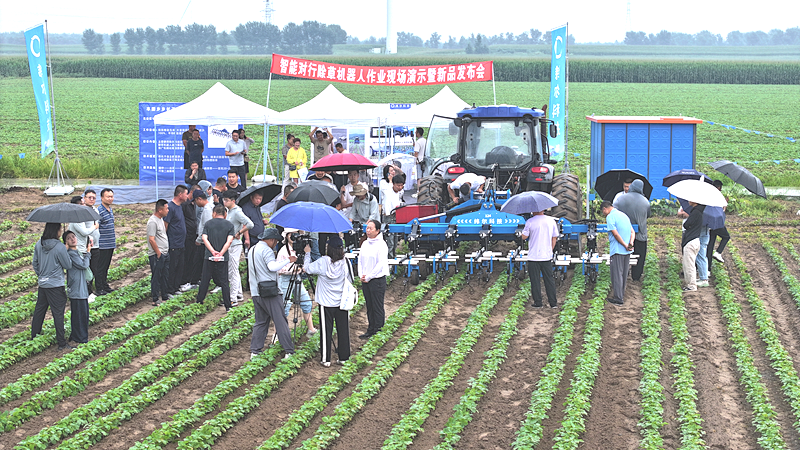 技术落地,方显真章。作业现场,智能对行除草机器人在有机大豆田间来回穿梭,高效“拔草”的同时,还能疏松土壤,除草率达95%以上。在保证作业质量的同时,实现了机械化、绿色化的除草方式。