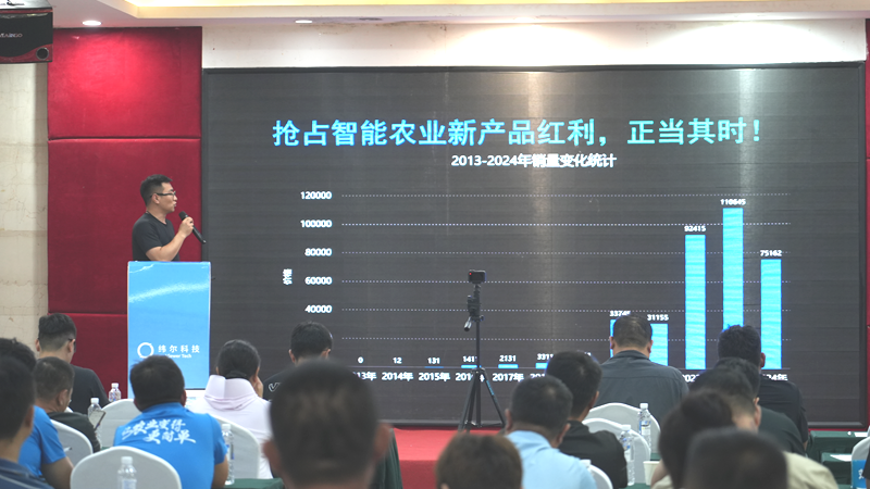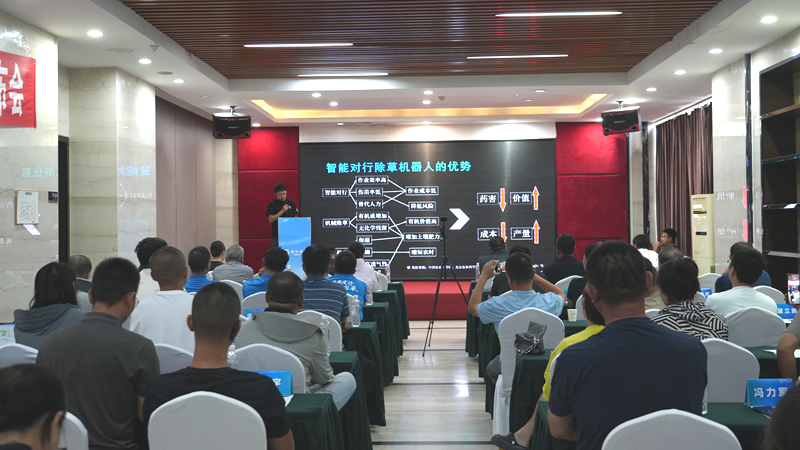 销售总监韩志宇随后介绍了纬尔科技的业务版图。作为全球领先的精准农业机器人企业,公司已经推出棉花智能打顶机器人、农具导航系统、稻田管家等多款产品,覆盖多种作物与作业场景。这次发布的智能对行除草机器人,正是公司在机械除草领域的又一次重要突破。