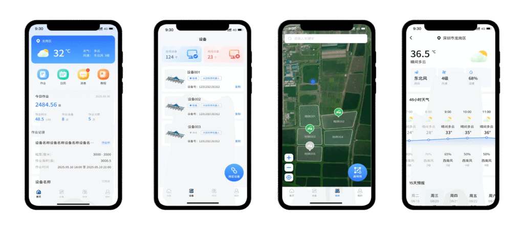 配套的“智农”APP可统计作业面积、回放轨迹、提供精准气象服务,并与云平台联动;