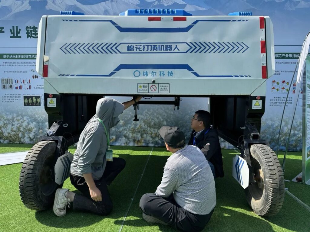 展区现场,这款机器人吸引了众多领导、专家与农户驻足了解。现场不少农户表示,这台机器人干活既精准又高效,大大减轻了人工负担,也让大家对未来的棉田管理更有信心。